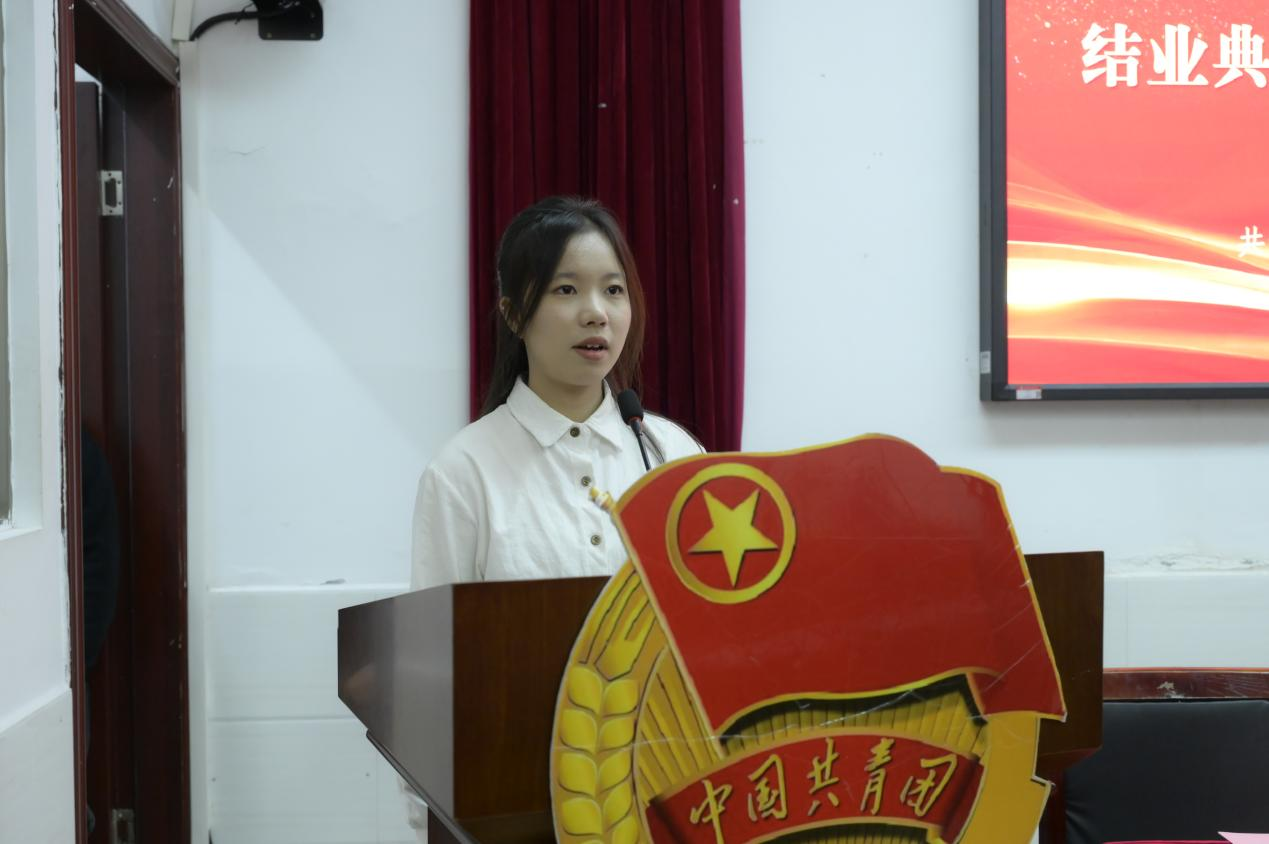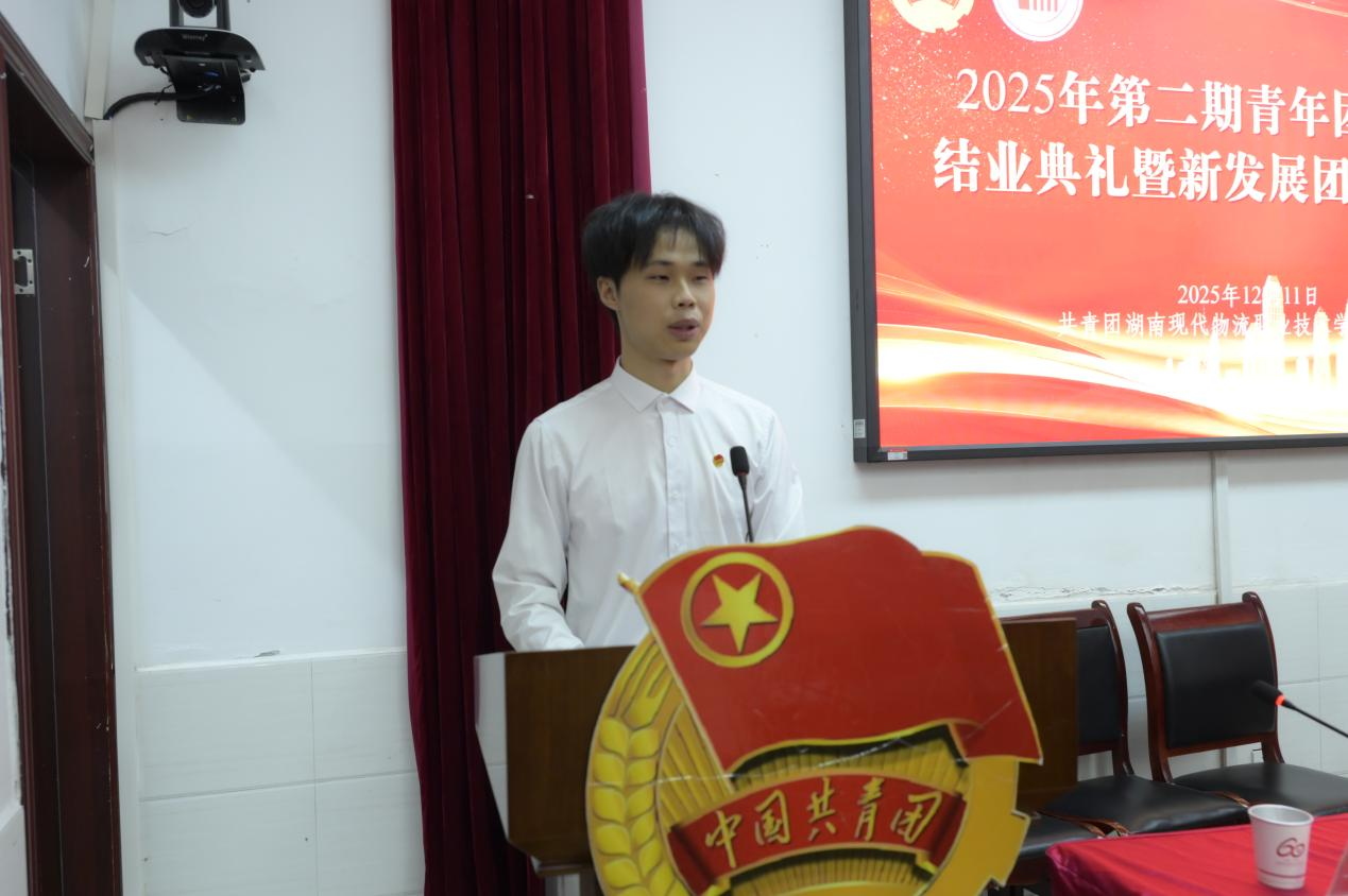 随后,肖勇作总结讲话,向结业入团同学祝贺、向授课教师致谢,他指出青年团校学习是青年思想淬炼与实践锻炼的重要经历,能为未来发展筑牢基础;随后对新团员提出三点希望,一是以思想为舵做信念坚定的追光者,深学党的创新理论,在志愿服务中体悟奉献价值,将个人理想融入时代洪流;二是以实践为桨做知行合一的实干家,在科创竞赛、乡村振兴、志愿活动中锤炼本领,把知识转化为解决问题的能力;三是以担当为帆做挺膺奋进的开拓者,心怀“国之大者”,在基层实践与时代征程中勇担使命;最后他强调团校结业是新征程的起点,希望青年团员将理论转化为动力,成长为有理想、敢担当、能吃苦、肯奋斗的新时代好青年。
