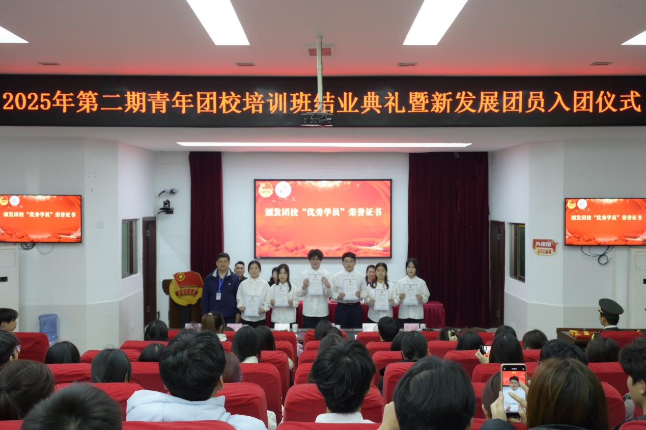 仪式伊始,全场肃立,雄壮的《中华人民共和国国歌》奏响,激昂旋律凝聚起新时代青年的家国情怀与奋进力量,为本次活动拉开庄重序幕。随后,毕静明宣读《关于表彰学校2025年第二期青年团校培训班优秀学员的决定》,对表现突出的优秀学员予以肯定。肖勇为优秀学员逐一颁发荣誉证书,这份荣誉既是对学员们潜心学习、积极实践的肯定,更是对青年一代勇担使命、砥砺前行的激励。