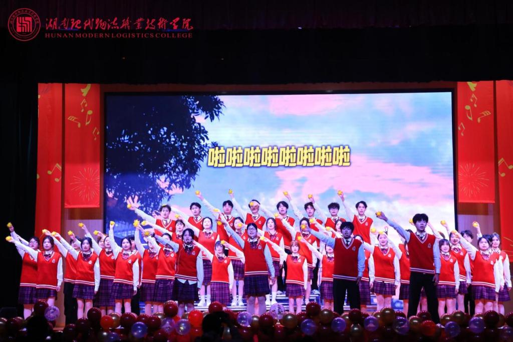 第二篇章“青葱岁月·展风华”洋溢青春活力。物流工程学院乐队演唱《第一天》,旋律轻快、元气拉满,唱出少年逐梦的热忱;物流商学院与舞蹈协会联合带来的流行舞串烧《追光吉舞企划》,舞步整齐、气场全开,尽显少女们的灵动风采;纪检监察处情景朗诵《时空回响·清风致远》以“清风起,明月照,此心向廉行正道”开篇,古今对话的创新形式生动诠释立德树人的清廉底色;物流管理学院《踏歌·逐光行》歌声清脆,裹挟着彝族火把节的热烈韵律,银饰轻响、裙摆飞扬间,浓郁的民族风情扑面而来。