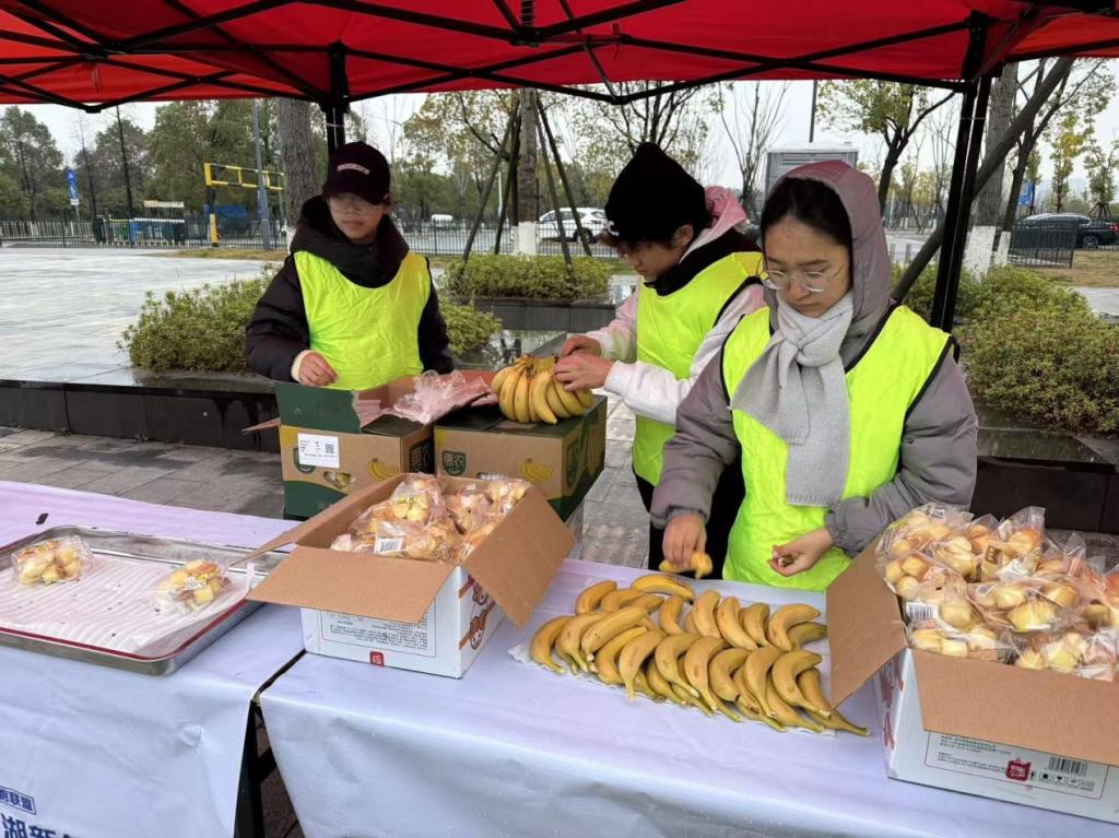 赛事结束后,志愿者们没有立刻离场,而是主动承担起垃圾分类和场地清洁工作,认真清理每一处垃圾,用心守护松雅湖的水清岸绿。“看到跑者们畅快的笑容,听到那一声声真诚的‘谢谢’,所有的寒冷和疲惫都烟消云散了。”赛道补给站的蒋菲同学感慨道。