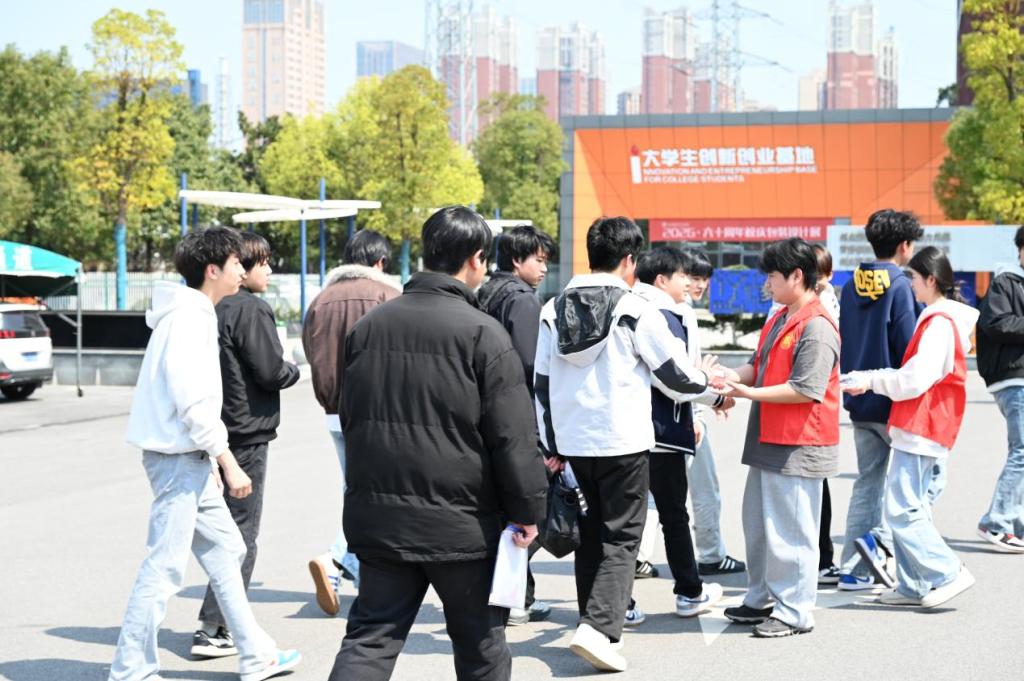 清晨7时30分,身着红马甲的志愿者们已全员到岗,他们分布在校园各关键点位,化身“引路者”“服务者”“答疑者”,细致做好考试楼层引导、免费饮用水发放、现场咨询解答等工作。学校特别设置行李寄存、休息区服务,开放一食堂、二食堂、图书馆一楼三处休息区域,志愿者全程在岗值守,高效处置多起突发情况:护送迟到考生快速入场、协助遗失证件考生补办准考证、指引文具缺失考生至附近文具店购置用品,切实化解应考难题。